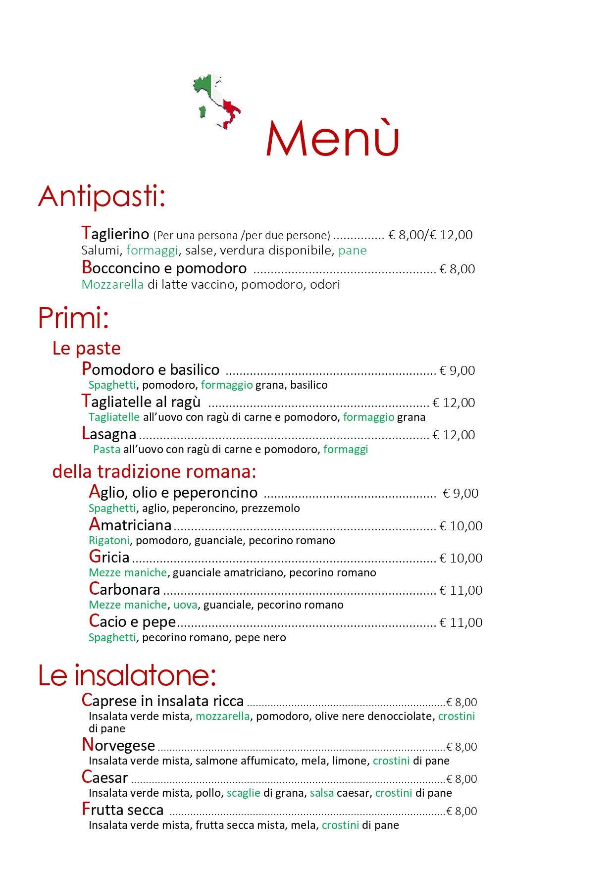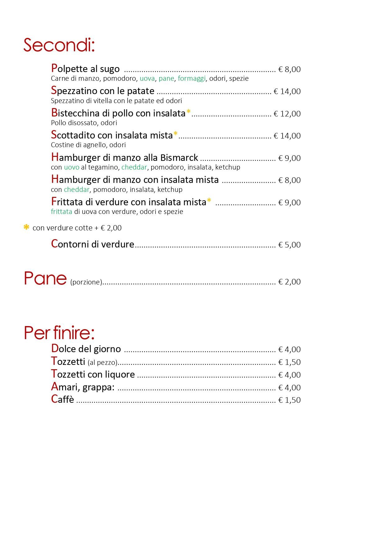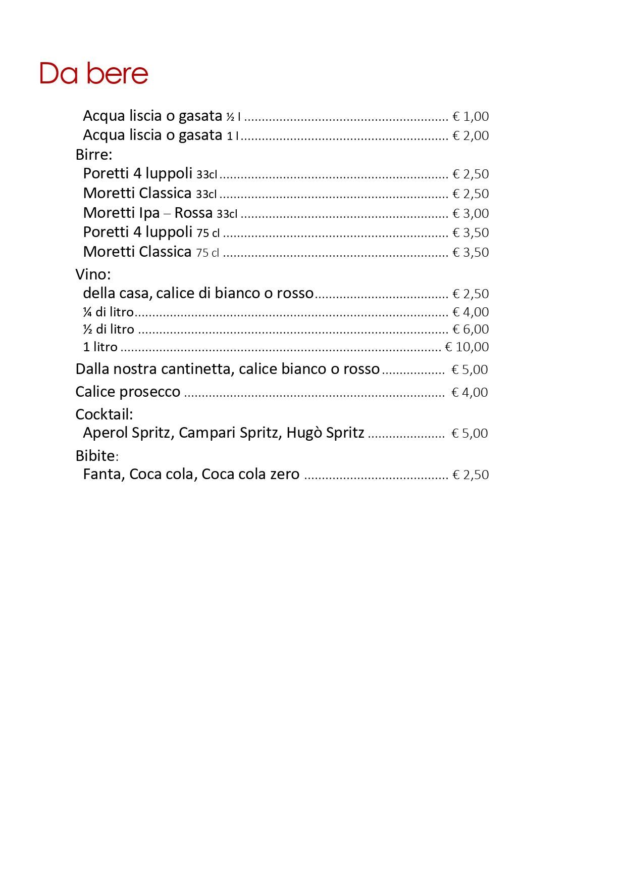 Esplora un'ampia varietà culinaria nel nostro menu alla carta, con squisite paste della tradizione romana, insalatone, secondi a base di carne e non solo e golosi panini. Concludi il tuo pasto in dolcezza con il nostro irresistibile dolce del giorno.