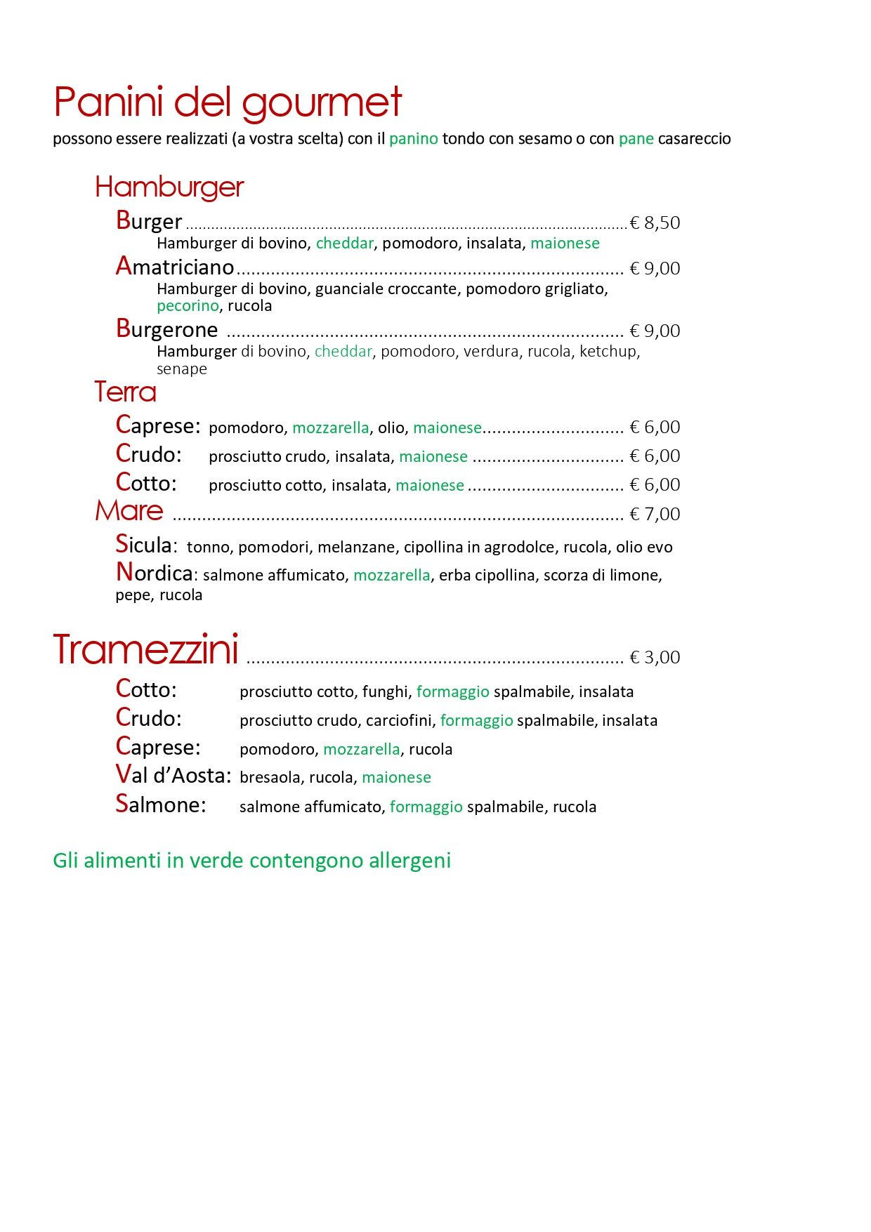 Scopri il nostro Menu alla carta